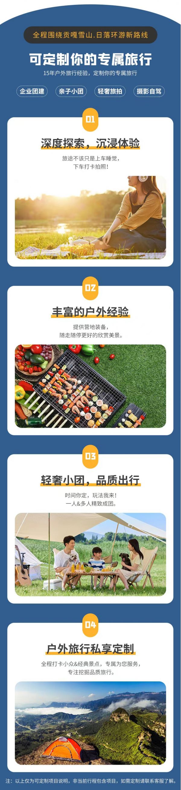 私人訂制:我們業(yè)務(wù)范圍囊括了全國各大城市,川西、西北、新疆、西藏,在路上永遠有我們的身影。我們將為每一個有定制需求的你策劃出獨屬于自己的完美旅行。