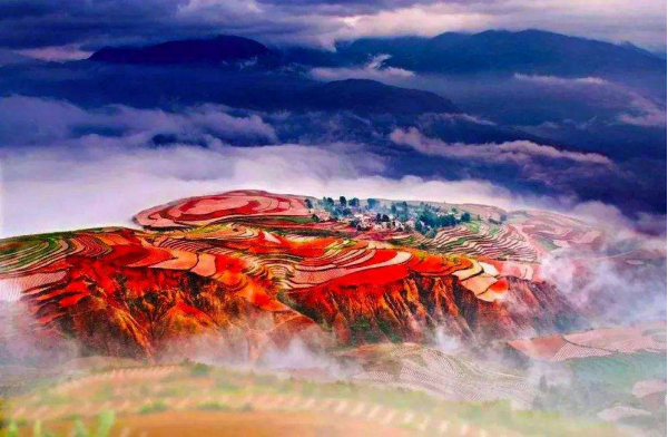 云貴高原上有一片絢爛的土地,赤、橙、紅、綠、青、藍(lán)、紫,像彩虹一般,那似乎是被遠(yuǎn)古天地塌陷后燃起的天火狠狠地燃燒過(guò),才有了如今這般艷麗到極致的色彩。入秋之后,則艷之更甚,燦之愈烈!