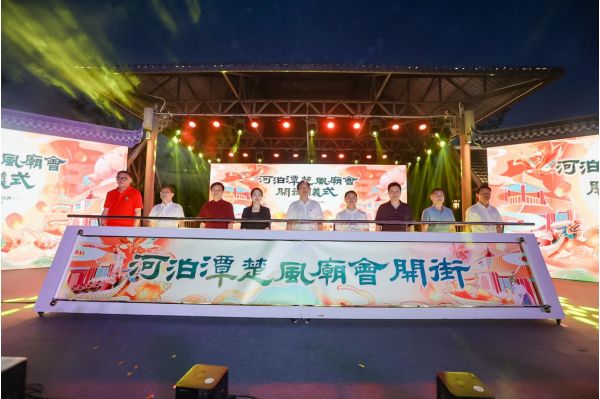 開街儀式以“楚風(fēng)+晚會”的模式進(jìn)行,儀式之后,廟會3個小舞臺也陸續(xù)上演精彩節(jié)目。在橘頌廣場的民俗舞臺上,火把舞、上刀山、雜技蹬缸、變臉、柔術(shù)表演輪番上演。在離騷廣場的非遺舞臺,皮影木偶戲驚艷亮相。在華麗精致的畫舫游船上,舞蹈演員伴著古樂翩翩起舞,為游客呈獻(xiàn)了新穎的“水上視覺盛宴”。當(dāng)晚,主舞臺還有非遺傳承人帶來的茶館評書。