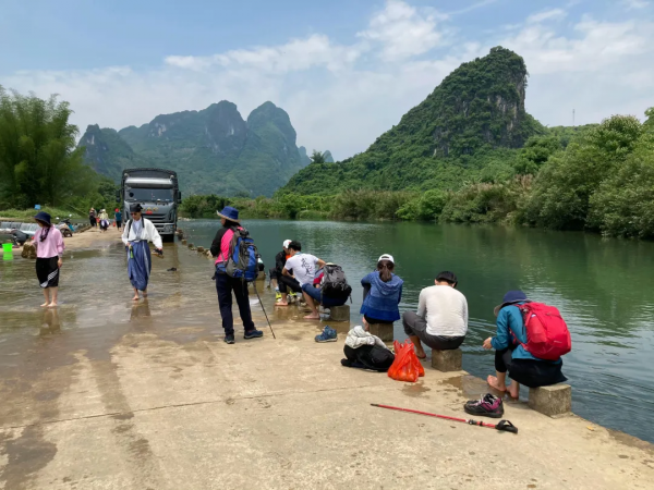 游覽陽(yáng)朔風(fēng)景如畫(huà)的線路【十里畫(huà)廊】車(chē)觀(游覽時(shí)間約20分鐘),陽(yáng)朔十里畫(huà)廊位于陽(yáng)朔月亮山,因沿路風(fēng)景秀麗,如詩(shī)如畫(huà),被稱(chēng)為陽(yáng)朔十里畫(huà)廊。主要景觀有佩桃獻(xiàn)壽、海豚出水、尼姑下山、火焰山、八戒曬肚、金貓出洞、馬象奇石、龍角山、猴子民愁、駱駝過(guò)江、青厄風(fēng)光、古榕美景、美女梳妝等。人在路上走,如在畫(huà)中游,說(shuō)不完的妙處。清風(fēng)迎面吹來(lái),望著兩旁的青山綠樹(shù),行走在鄉(xiāng)村阡陌,品花香、稻香、泥香,一路拍拍走走,沿途的奇山秀水,近距離感受著桂林山水之美、獨(dú)特的喀斯特地貌和那清澈的漓江水。沿途,我們還會(huì)欣賞到著名陽(yáng)朔美景【駱駝過(guò)江】,十里畫(huà)廊東側(cè),工農(nóng)橋旁望去,在一望無(wú)際的田園間,田家河像條白絹,宛然曲折東流,河邊有一山,酷如駱駝,形態(tài)似自得漫步,前往欲過(guò)河,人稱(chēng)“駱駝過(guò)江”。