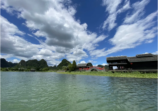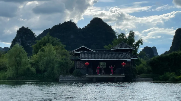 早餐后,游覽原汁原味、原生態(tài)、具有濃郁廣西少數(shù)民族風(fēng)情的《劉三姐》電影拍攝實(shí)景地—【經(jīng)典劉三姐大觀園】(AAAA級(jí)景區(qū),游覽時(shí)間約120分鐘),景區(qū)內(nèi)具有壯族特色的金蟾對(duì)歌臺(tái),造型奇特,令人大開(kāi)眼界。