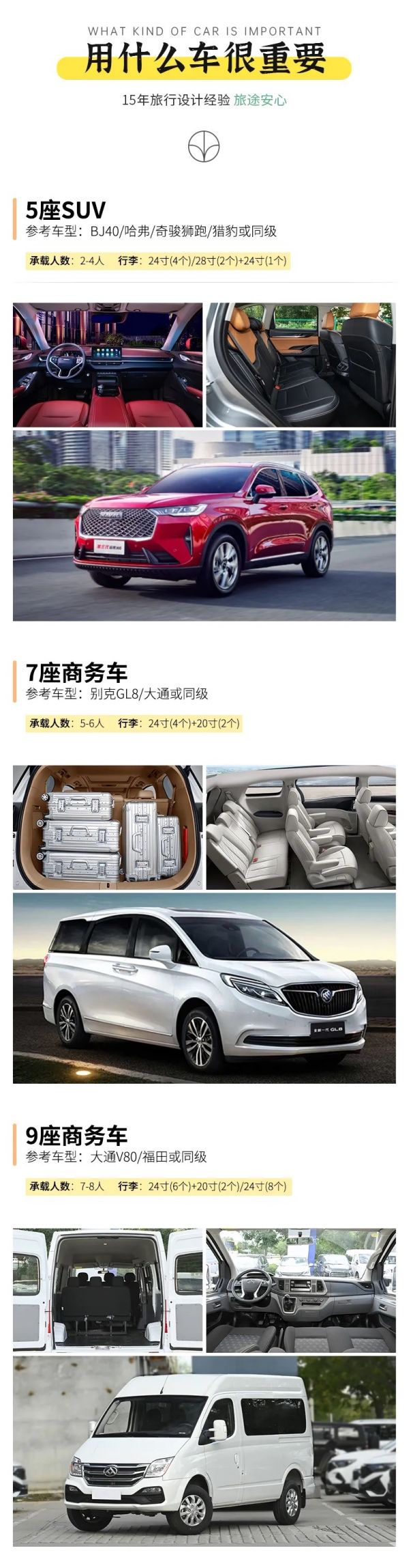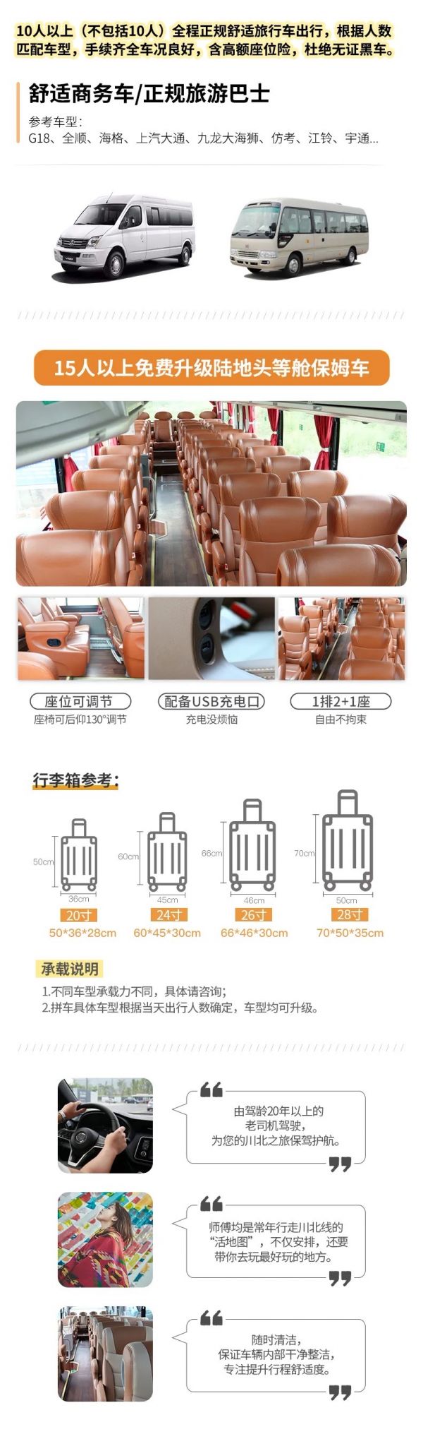 交通:根據(jù)人數(shù)確定車輛,15人即升級(jí)保姆車(已含駕駛員食宿)