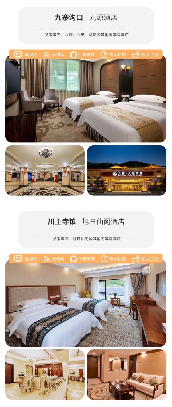 九寨溝口:九源酒店、九安賓館、晶都或其他同級(jí)別