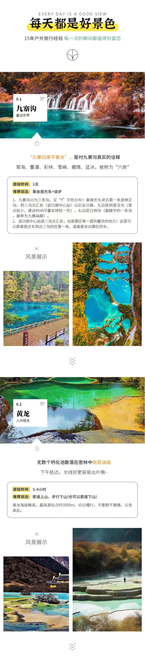4、九寨溝景區(qū)實(shí)行分區(qū)域開(kāi)放,開(kāi)放區(qū)域?yàn)闇峡诮?jīng)諾日朗瀑布至長(zhǎng)海,扎如溝的扎如寺及日則溝的鏡海;其中,長(zhǎng)海、五彩池、鏡海、諾日朗瀑布、樹(shù)正群海、雙龍海瀑布、扎如寺等景觀原則上為步行游覽區(qū),具體游覽方式請(qǐng)聽(tīng)從隨車講解員安排。