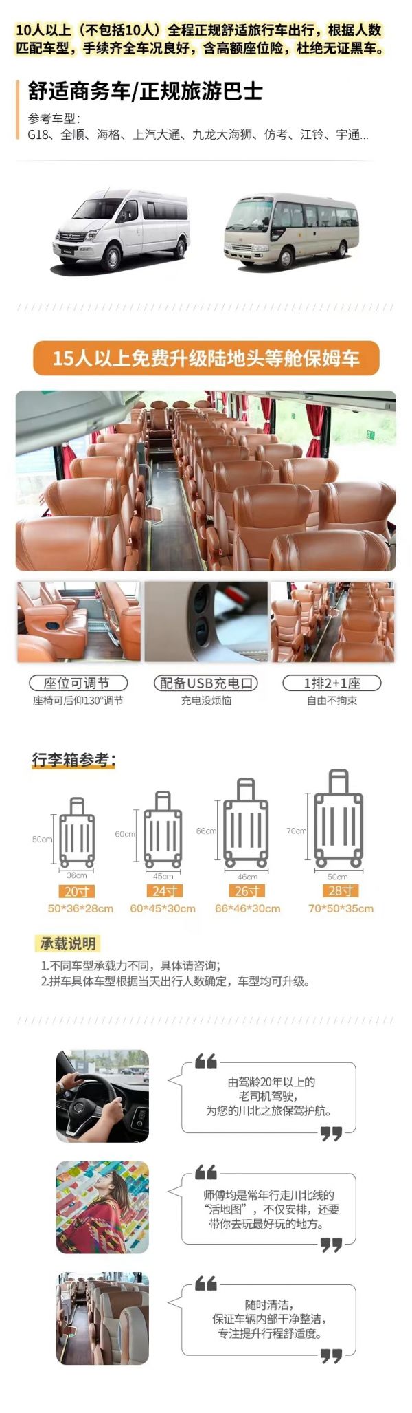 交通:根據(jù)人數(shù)確定車輛,15人即升級(jí)保姆車(已含駕駛員食宿)