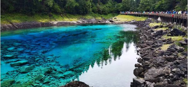 世界自然遺產(chǎn)組織的官員,在1992年第一次到九寨溝考察時,從溝口進(jìn)去時,大家被大雨蒙住了視線。當(dāng)他們一行來到火花海景點時,天空突然放睛,陽光穿過空中的霧靄,在天空中畫出了一道美麗的彩虹,妖嬈艷麗的火花海呈現(xiàn)在這些世界級官員的眼前,他們被眼前的美景驚呆了。隨即,他們俯下身跪在海子邊上,向這大自然的造化叩拜。事后他們回憶說,這里的景色太美了,讓他們太吃驚了。他們不曾想象過,大自然竟有如此的鬼斧神工,將中國的九寨溝點畫得如天仙般的美麗。