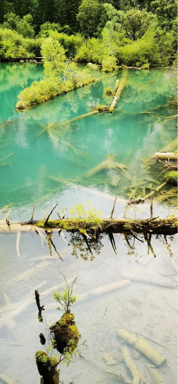 九寨溝四季景色各異:仲春樹綠花艷,盛夏幽湖翠山,金秋盡染山林,隆冬冰塑自然。雪峰、翠海、疊瀑、藍冰、彩林、藏情,“九寨六絕”倍受世人青睞?!K年碧藍澄澈,古樹環(huán)繞,奇花簇擁,宛若鑲上了美麗的花邊,各具特色。