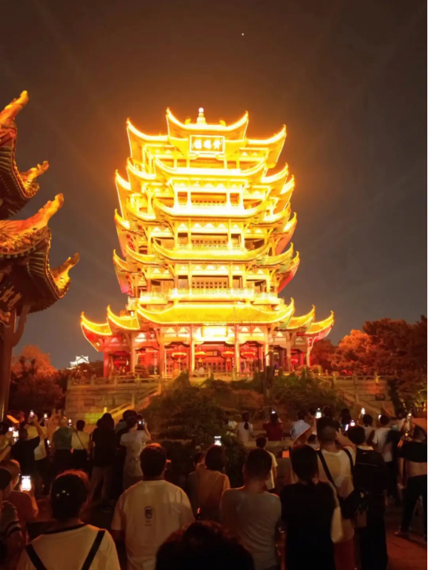 作為文化和旅游部第一批全國智慧旅游沉浸式體驗(yàn)新空間培育試點(diǎn)項(xiàng)目,“夜上黃鶴樓”以黃鶴樓公園為載體,選取園內(nèi)8處景點(diǎn),通過“光影+演藝”的方式,讓游客在徐徐展開的光影畫卷中走入千年歷史。