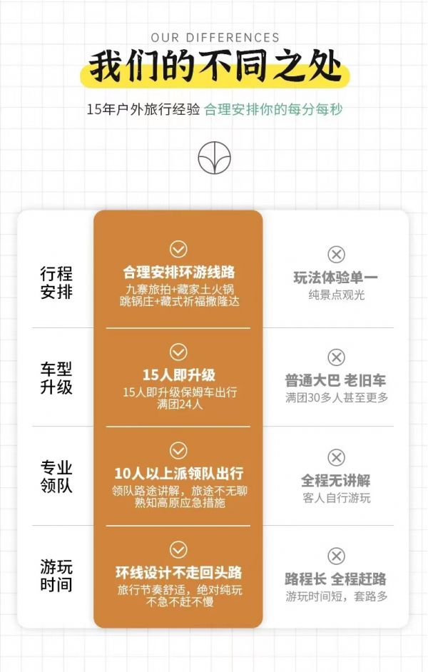 請(qǐng)對(duì)應(yīng)使用我方玩聚九寨環(huán)線6日行程,因使用其它行程造成的投訴,責(zé)任自負(fù);請(qǐng)仔細(xì)閱讀以上行程文檔,同意并保證遵守我方安排,以免為您帶來(lái)不必要的麻煩;如產(chǎn)生合同糾紛或人身意外事故,按《中華人民共和國(guó)合同法》、《道路交通法》、《保險(xiǎn)賠償條例》裁定;本行程作為旅游合同附頁(yè)與旅游合同同等法律效力。