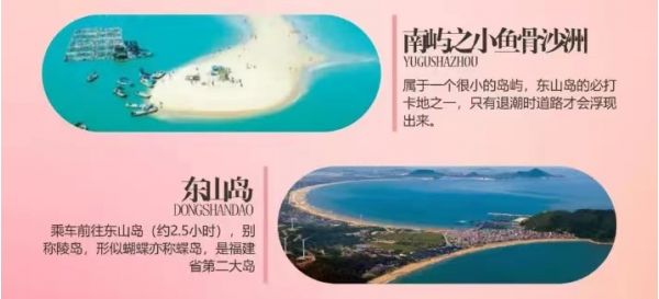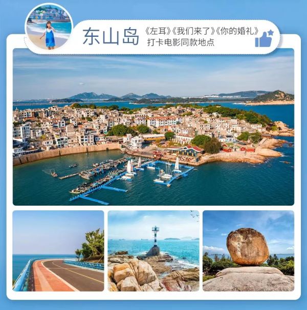 東山島:別稱陵島,形似蝴蝶亦稱蝶島,是福建省第二大島,曾獲得福建省最佳旅 游目的地、福建省“十大旅游品牌”、‘福建十大美麗海島’‘等榮譽(yù)。在東山島還拍攝過(guò)《八仙過(guò)?!贰段饔斡洝?《左耳》《我是誰(shuí)的寶貝》《我們來(lái)了第二季東山站)》等影視娛樂(lè)作品!