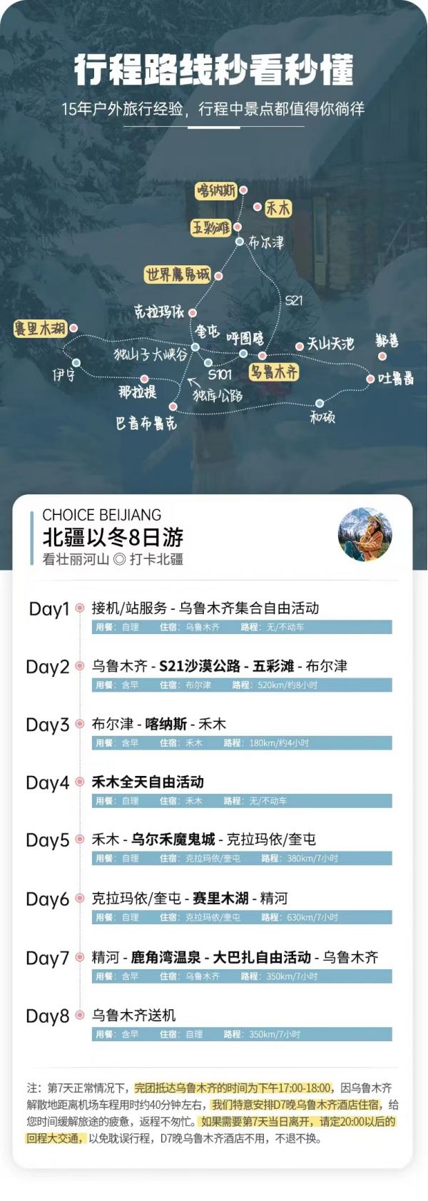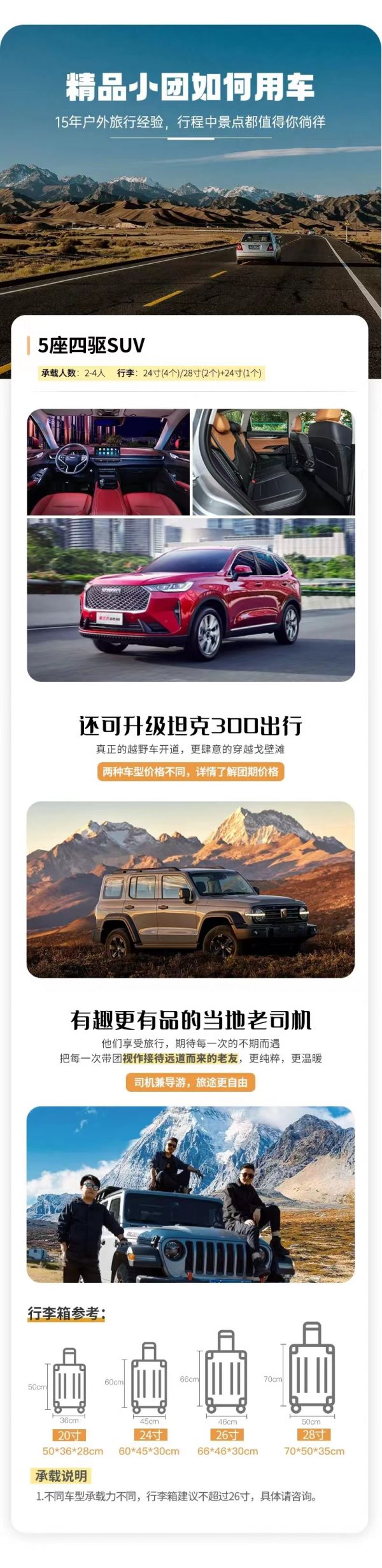 (3)本線路沒(méi)有“代購(gòu)業(yè)務(wù)”,請(qǐng)不要在團(tuán)隊(duì)中或者完團(tuán)后,請(qǐng)求駕駛員代購(gòu)任何產(chǎn)品,如有需要請(qǐng)自行篩選、購(gòu)買。