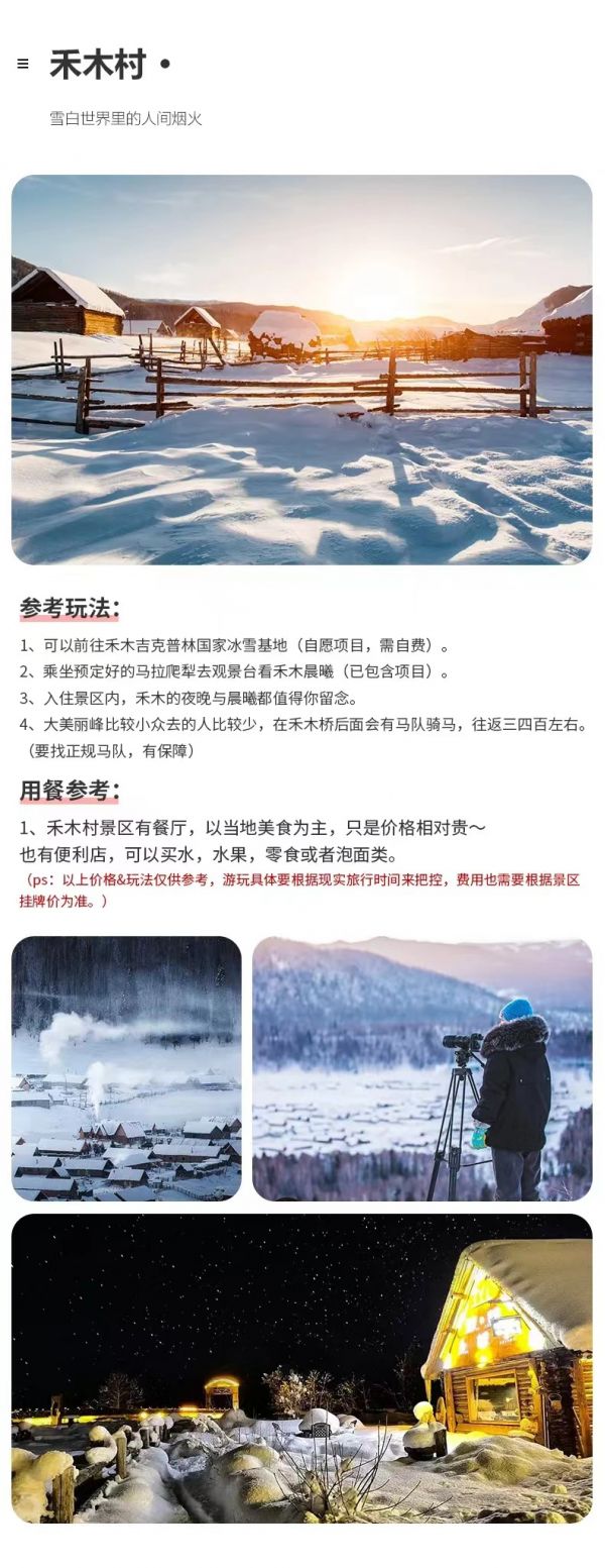 【禾木自由活動(dòng)推薦,價(jià)格僅供參考,以景區(qū)公示為準(zhǔn):】