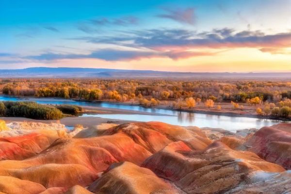 在夕陽(yáng)西下時(shí)候,前往【五彩灘】外圍游覽,這里是額爾齊斯河的一段特殊的河灘,南岸是蔥郁的樹(shù)木和草地,北岸則是寸草不生的土地,一河兩岸,各有洞天。這里的土丘擁有豐富的地貌色彩,被稱為上帝打翻的調(diào)色板,尤其是天氣晴好夕陽(yáng)西下時(shí)分,進(jìn)入景區(qū)后看到余暉灑在河岸邊的丘陵,顏色瑰麗令人炫目。穿行在土地的溝壑之中,兩側(cè)的土壤或呈灰褐色,或呈金黃色,還可以登上觀景臺(tái),俯瞰整個(gè)景區(qū)帶給眼睛的色彩沖擊,舉起相機(jī)拍出你想要的大片。來(lái)到布爾津一定要去熱鬧的河堤夜市逛一逛,品嘗這里特產(chǎn)的烤魚(yú),配上一杯香甜的格瓦斯,一掃當(dāng)日的旅途辛勞?!?