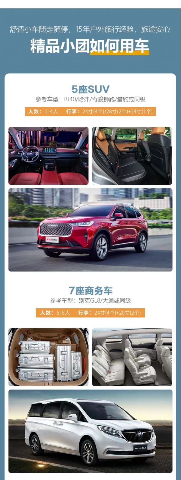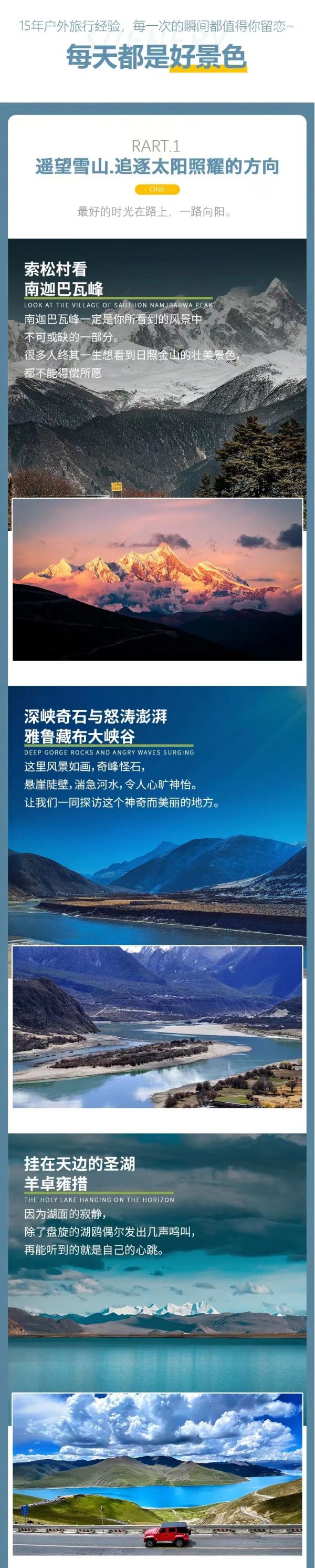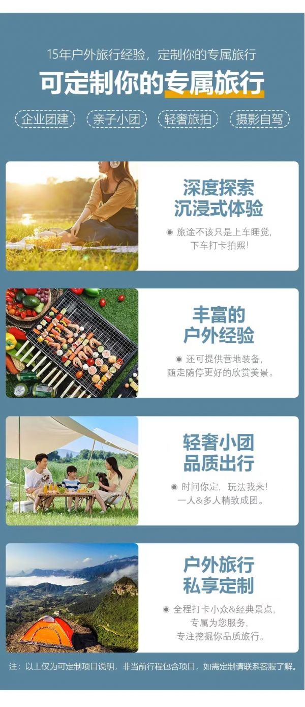 私人訂制:我們業(yè)務(wù)范圍囊括了全國各大城市,川西、西北、新疆、西藏,在路上永遠(yuǎn)有我們的身影。我們將為每一個(gè)有定制需求的你策劃出獨(dú)屬于自己的完美旅行。