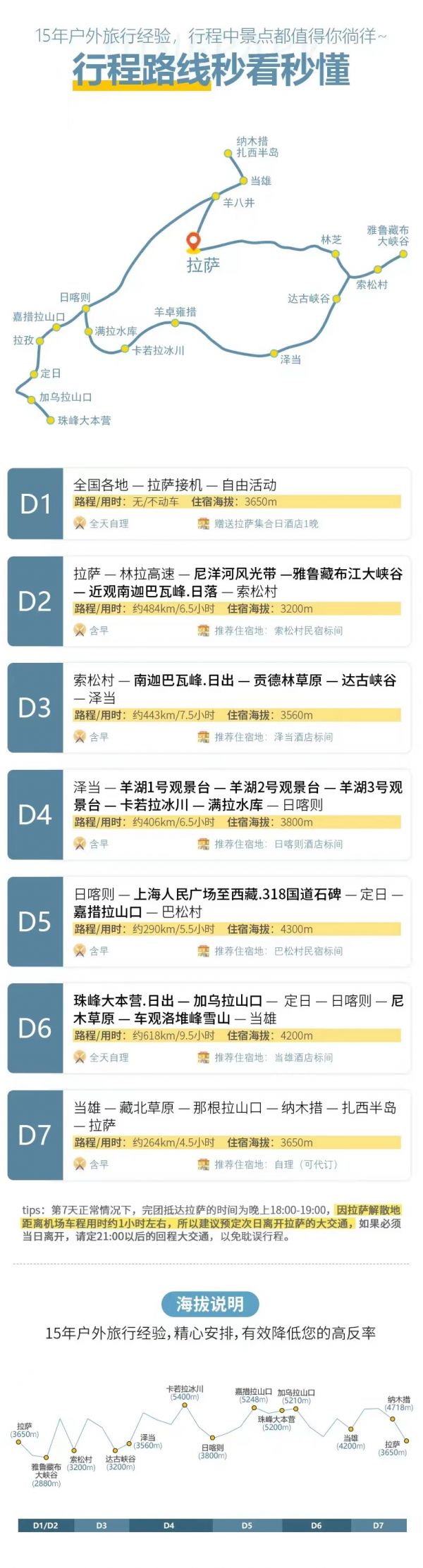 海拔情況:4200m—4500m—5190m—4718m—3650m