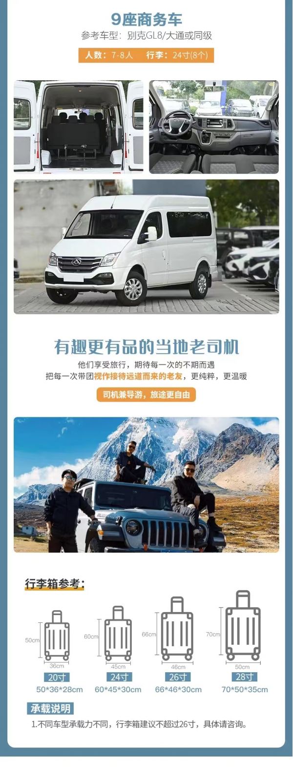 交通:2-8人VIP私享小團(tuán),全程舒適商務(wù)車出行,車型大小根據(jù)實(shí)際人數(shù)安排,保證一人一正座位,且由駕駛經(jīng)驗(yàn)豐富的司機(jī)為您的出行保駕護(hù)航,報(bào)價(jià)包含車費(fèi)、油費(fèi)、停車費(fèi)、維修費(fèi)及司機(jī)勞務(wù)費(fèi)。