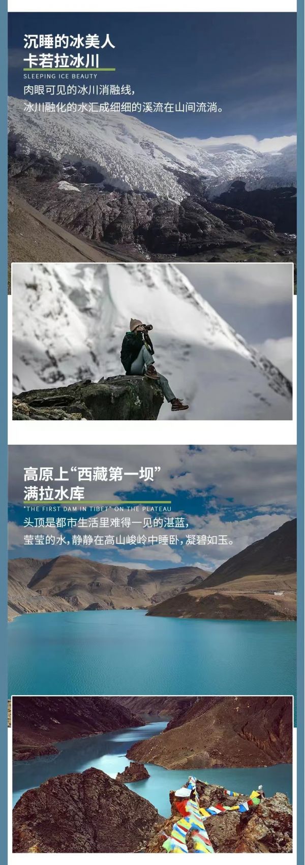 澤當(dāng) — 羊湖1號觀景臺(山頂:崗巴拉山口) — 羊湖2號觀景臺(半山腰) — 羊湖3號觀景臺(湖邊) — 卡若拉冰川 — 滿拉水庫 — 日喀則