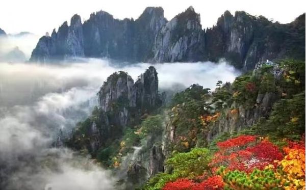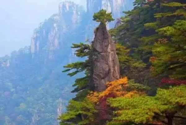 黃山“黃山歸來(lái)不看岳”,這是吸引眾多游客登黃山賞美景的一大理由。這個(gè)季節(jié),如畫(huà)的秋色為黃山平添了幾份秀美。黃山的秋天來(lái)得早,到了10月,黃山的月平均氣溫只有11.7℃。黃山的秋季,別有種種勝景,明代大旅行家徐霞客曾贊美黃山秋色“楓林相間,五色紛披,燦若圖繡”。仰望天空,黃山的天湛藍(lán)如洗,入了秋更顯得高遠(yuǎn),空曠無(wú)邊、萬(wàn)里無(wú)云,更無(wú)一絲雜質(zhì),像一塊覆蓋大地的藍(lán)寶石。秋用赤、橙、黃、綠、青、藍(lán)、紫七色神筆把黃山描繪得色彩斑斕,濃墨重彩地勾勒燦若圖繡的世界,遠(yuǎn)峰近松,到處充滿(mǎn)了秋色的誘惑,讓人難以抗拒。