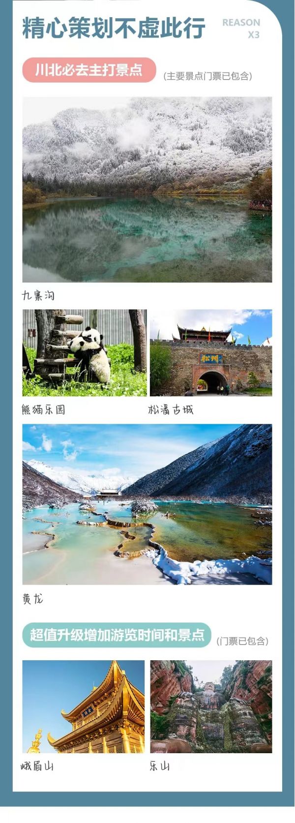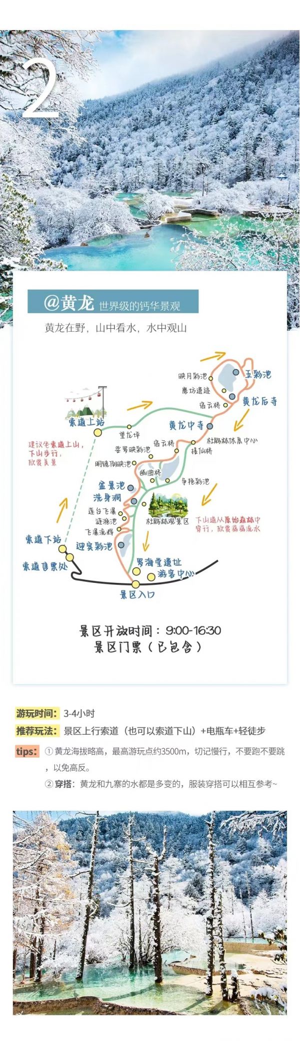 (3)特別提示:12月16日-3月31日期間黃龍索道停運,屆時需步行上下游覽黃龍景區(qū),敬請知曉。