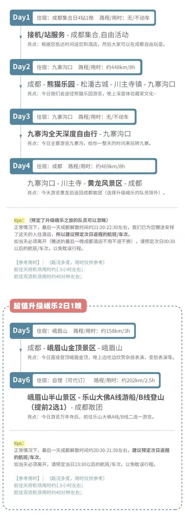 (1)由于川西地區(qū)路況較差,山道狹窄,有可能因為堵車而導(dǎo)致延誤,請大家預(yù)定第二天返程的航班或車次,以免為您造成不必要的損失。