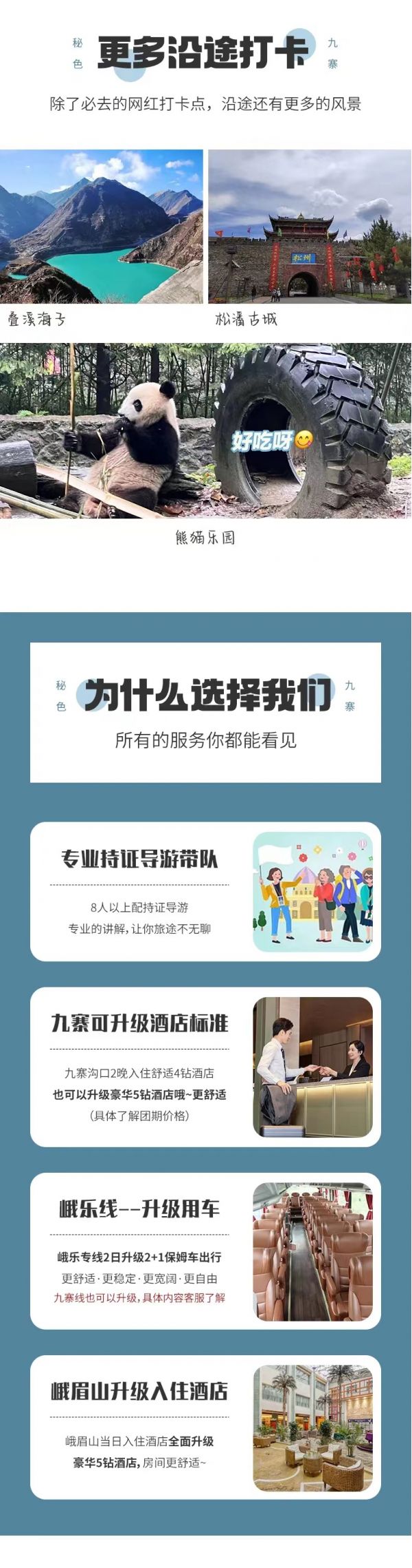 (2)九寨溝面積較大游客需求不一,因此主要以游客自助游形式游覽,如無領(lǐng)隊陪同望您諒解。游覽開始前領(lǐng)隊會與您約定好集合時間,請務(wù)必按時到達(dá)指定地點,避免耽誤大家接下來的行程;