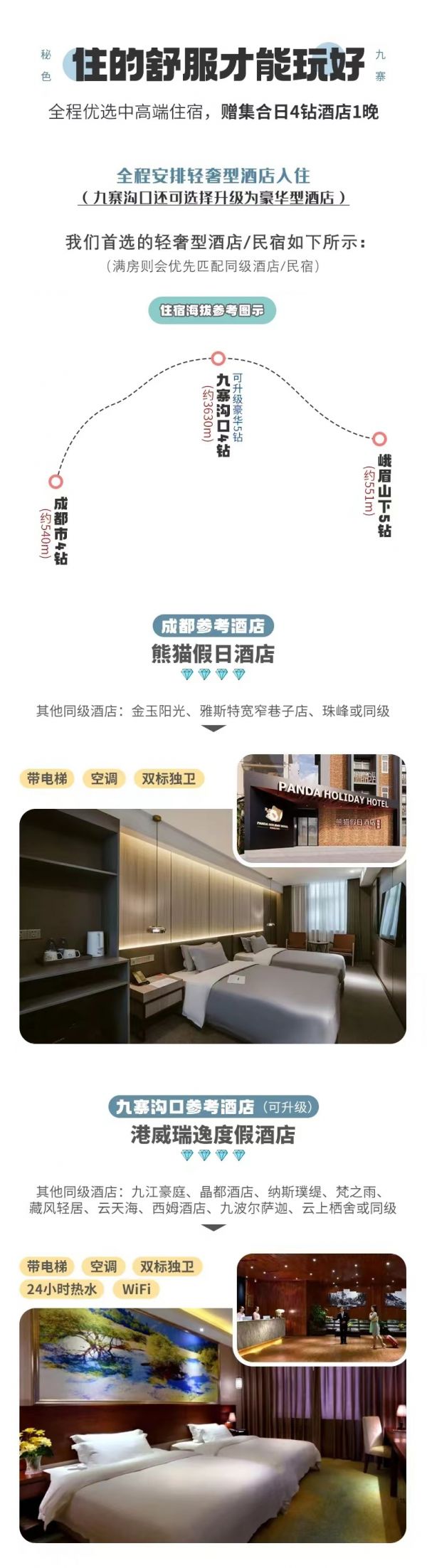? 住宿:贈送成都集合日4鉆酒店