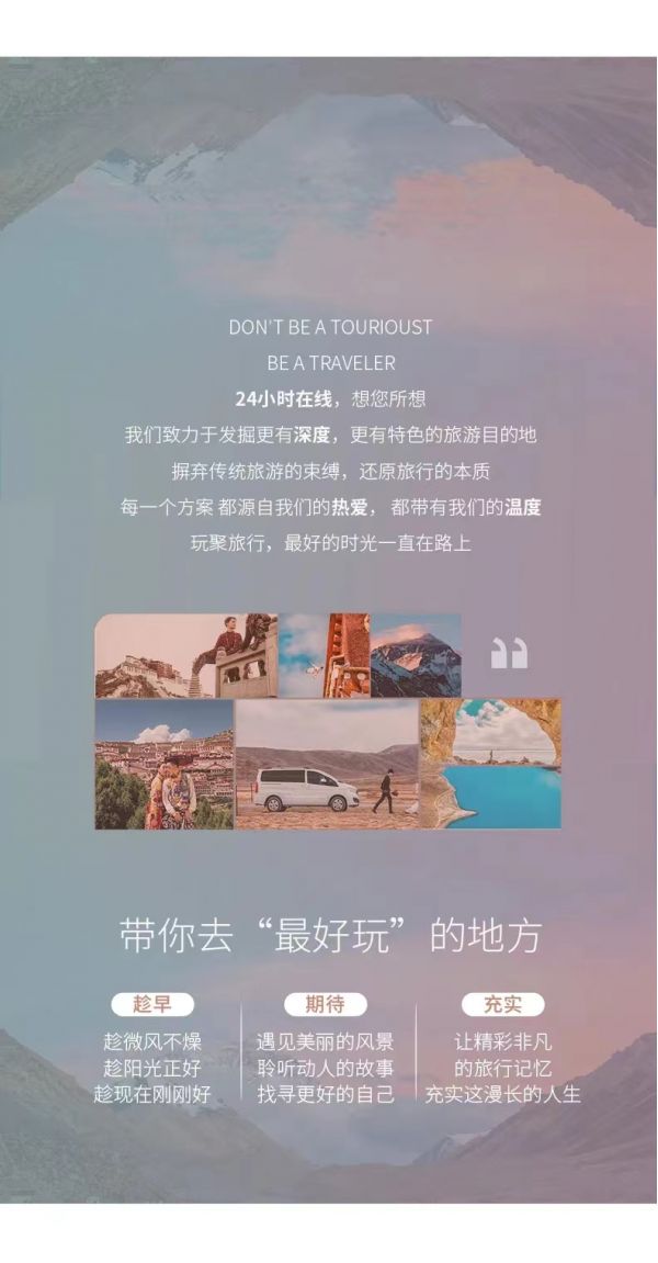 (1)出發(fā)前一天晚上18:00-22:30通知接你的具體時間,請務(wù)必保持電話暢通(接早的時間根據(jù)師傅線路決定,為保障整個團(tuán)隊的順利出行請注意配合時間安排,感謝理解)