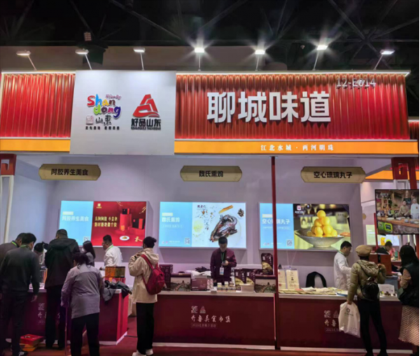 阿膠養(yǎng)生美食、魏氏熏雞、空心琉璃丸子等“聊城味道”以及臨清桑黃、東阿阿膠、冠縣靈芝“聊城新三寶”在現(xiàn)場予以展出。此外,活動現(xiàn)場還展示了具有濃郁地方特色的文創(chuàng)產品,如義珺軒葫蘆、紅木鑲嵌玉石花鳥插屏、紅木鑲嵌佛手如玉等,吸引力大量參觀者駐足欣賞。