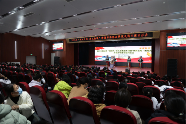 由中共聊城市委宣傳部、聊城市文化和旅游局、聊城市文學(xué)藝術(shù)界聯(lián)合會(huì)聯(lián)合主辦,聊城市文化館、聊城市京劇院、聊城市豫劇院、聊城市雜技團(tuán)、聊城高鐵新區(qū)發(fā)展服務(wù)中心承辦,東昌府區(qū)文化館、聊城文軒中學(xué)、聊城東方教育集團(tuán)協(xié)辦的2023年聊城市“百靈鳥”文化志愿服務(wù)項(xiàng)目“兩河之約 遇見高鐵”濟(jì)鄭高鐵建設(shè)慰問(wèn)演出活動(dòng)在聊城文軒中學(xué)西校區(qū)成功舉辦。