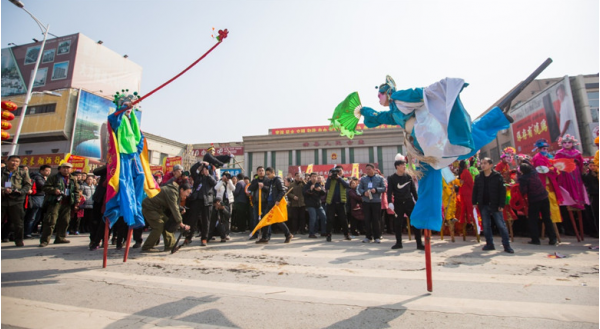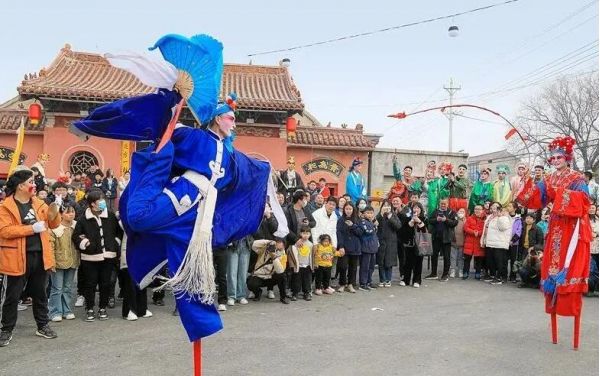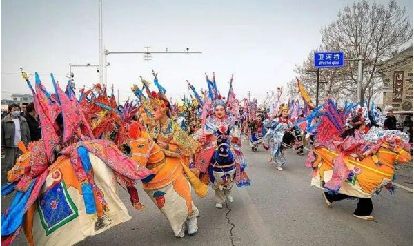 人們?yōu)楸苊饣馂?zāi),以這種方式祭祀火神,表達(dá)了勞動人民一種辟邪除災(zāi)、迎祥納福的美好愿望?!盎鹕駨R會”舉辦期間,到處人山人海,傳統(tǒng)節(jié)目有大集街高蹺、軍莊秧歌、背閣、抬閣、八卦秋、武術(shù)表演、竹馬、蓮花燈、火龍、花船等,男女演員盛裝上陣,從臉譜到服裝,無不體現(xiàn)了濃郁的傳統(tǒng)文化色彩。
