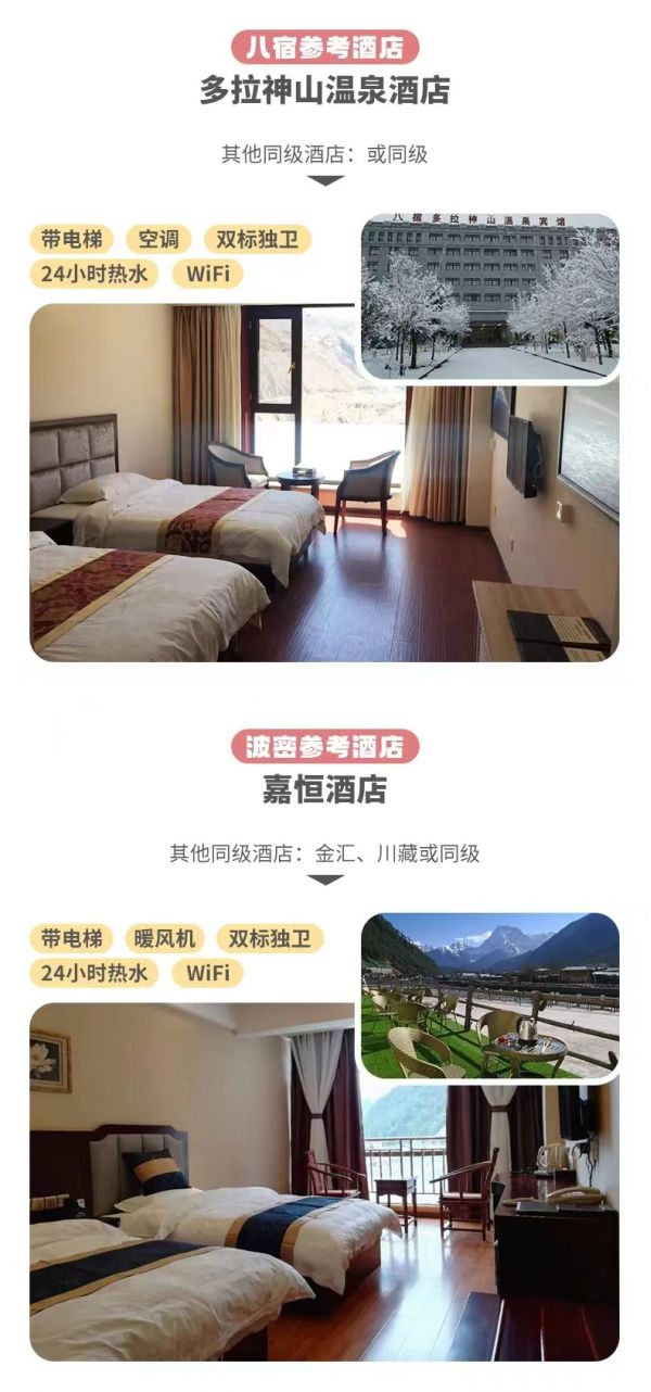? 用餐:含酒店早餐,晚餐嘉絨藏餐,午餐需自理