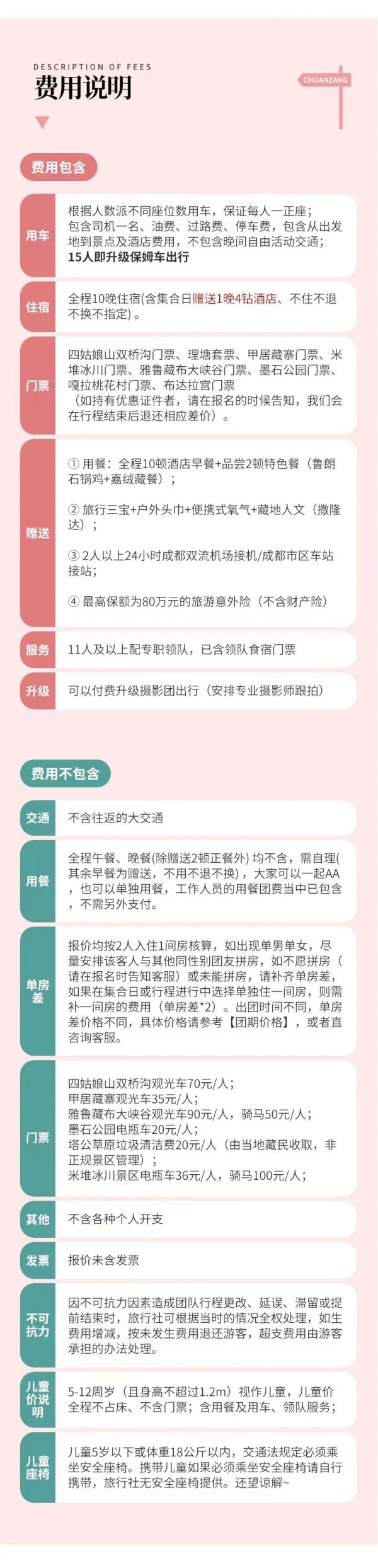 (3)此日行程較長,可能會稍感枯燥,下午的金川才是我們今日的行程重點(diǎn),所以沿途停車較少,敬請見諒。