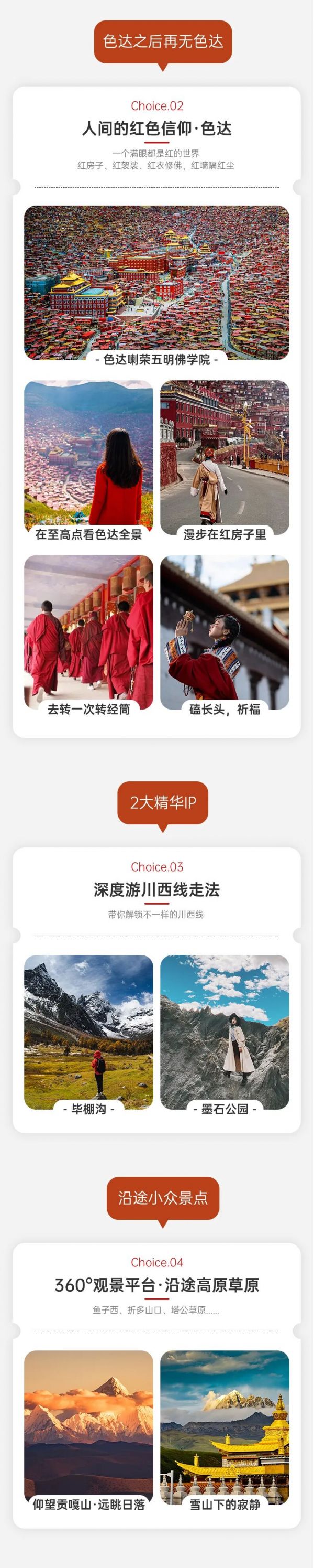 3、行程中不只色達(dá)一個(gè)景點(diǎn),還有更美好的景點(diǎn)等待大家,預(yù)祝大家旅途愉快!