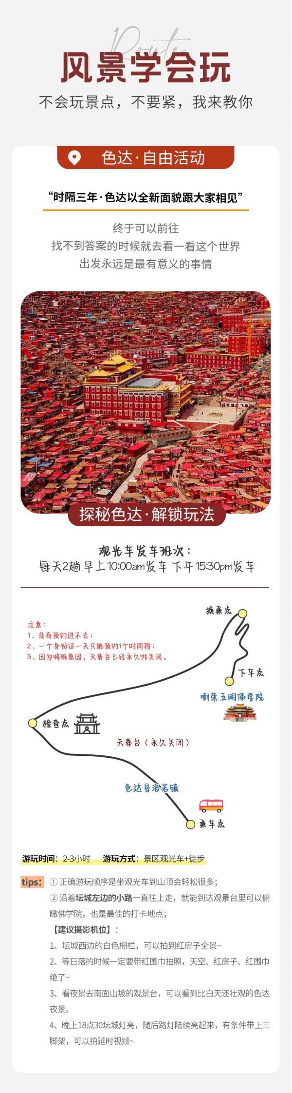 1、因限流原因,色達(dá)門票觀光車均需預(yù)定。