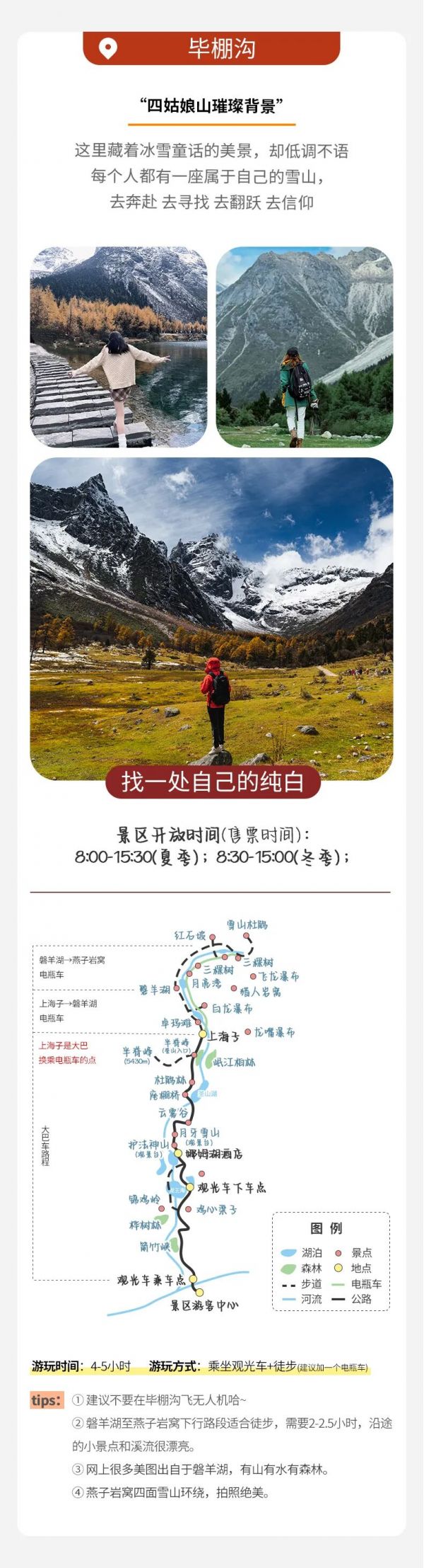 ? 美麗的山水世界【畢棚溝景區(qū)】(游覽時(shí)間3-4小時(shí))換乘景區(qū)觀光車,觀賞古樸的原始風(fēng)光,海龍王潭、女皇峰、娜姆湖、神女十二蜂、盤羊湖,美景讓您流連忘返, 這與大自然最親密的接觸, 留在心里,回味一生!冬季的畢棚溝,銀裝素裹,美不勝收,滑 雪、堆雪人,打雪仗,各種雪上娛樂項(xiàng)目其樂無窮。仿佛穿行如夢(mèng)如幻的冰雪童話世界,畫下你的身影,將您的祝福永遠(yuǎn)留在這里!穿梭于原始森林,眺綿延崎雪山雄峰、望飛瀉而下 的瀑布、看星羅棋布的海子、覓時(shí)有出沒的山珍野獸,夢(mèng)幻般的世界讓你領(lǐng)略別樣的異族風(fēng)情。