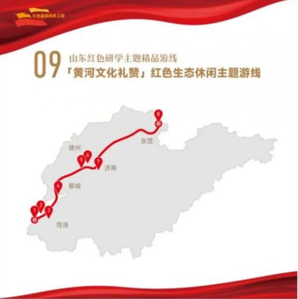 黃河文化是中華文化的重要組成部分,是中華民族的根和魂。山東沿黃9市文旅資源高度富集、紅色文化底蘊(yùn)深厚、精神標(biāo)識(shí)作用突出。沿著這條集歷史文化、自然風(fēng)光、紅色教育于一體的精品旅游線路,您將感受菏澤市冀魯豫黃河水利委員會(huì)舊址、聊城市劉鄧大軍強(qiáng)渡黃河戰(zhàn)役紀(jì)念園、德州市齊河黃河水鄉(xiāng)國(guó)家濕地公園、濟(jì)南黃河文化展館等景點(diǎn)串聯(lián)起的紅色記憶,感悟新時(shí)代黃河文化地標(biāo)背后厚重的紅色基因。