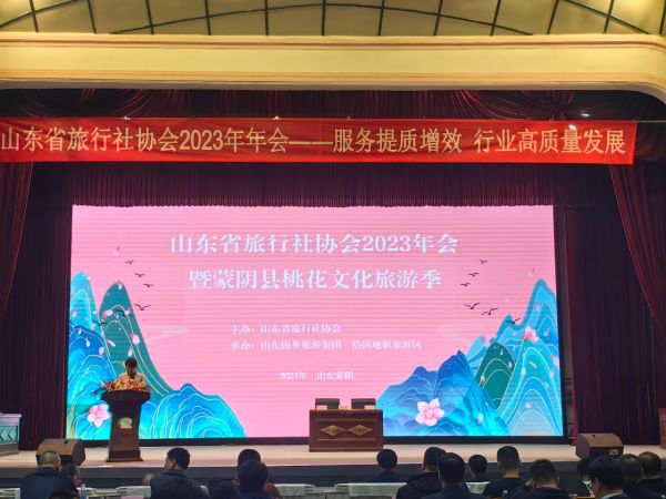 山東省旅行社協(xié)會2023年會暨蒙陰縣桃花文化旅游季蒙陰縣委副書記、縣長苗運(yùn)全致歡迎辭,詳細(xì)介紹了蒙陰縣整體情況、文旅資源和未來發(fā)展。他表示,山東省旅行社協(xié)會年會在蒙陰召開,必將有力擴(kuò)大蒙陰旅游的知名度,提升全縣旅游業(yè)的服務(wù)水平,蒙陰縣將以本次會議為契機(jī),持續(xù)深化“文旅融合、農(nóng)旅融合、紅綠融合”,進(jìn)一步健全研學(xué)旅游體系,塑造區(qū)域民宿品牌,全力爭創(chuàng)全國全域旅游示范縣,為旅行社提供更好的資源和服務(wù)。