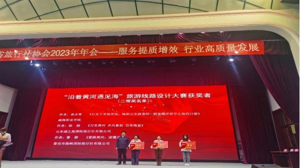 2024年3月29-30日,劉寶平受邀參加山東省旅行社協(xié)會2023年年會暨蒙陰縣桃花旅游文化季,并領(lǐng)取山東省“沿著黃河遇見海”旅游線路產(chǎn)品設(shè)計(jì)大賽一等獎。