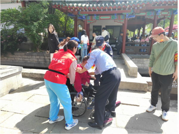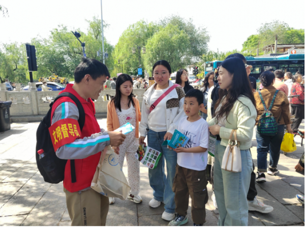 在人流量較大的地點,他們主動協(xié)助景區(qū)維護游覽秩序和安全,確保游客們能夠安全有序地游覽。同時,他們還向游客們
