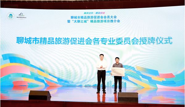 與會領導劉光輝為聊城市精品旅游促進會旅行社專業(yè)委員會授牌。