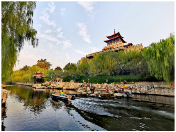 解放閣位于濟(jì)南市歷下區(qū)黑虎泉路東首,省級(jí)文物保護(hù)單位。閣高24.1米,連臺(tái)基通高34.1米,占地1637.2平方米,建筑面積617.2平方米。臺(tái)基東側(cè)貼壁立有“解放濟(jì)南戰(zhàn)役革命烈士紀(jì)念碑”,鐫刻著在濟(jì)南戰(zhàn)役中壯烈犧牲的3764位烈士的英名。