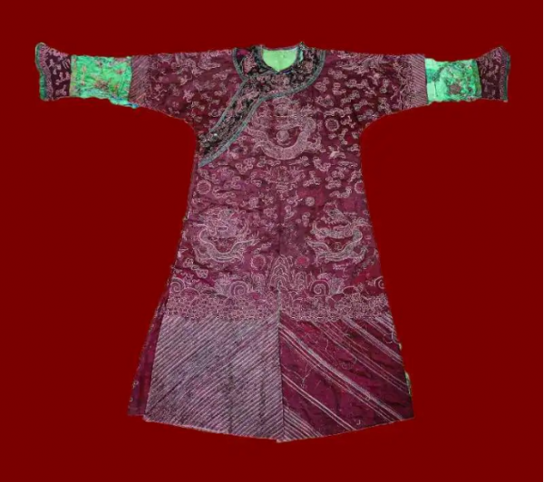 此件清代袍服以綢為地,采用刺繡傳統(tǒng)技法平金繡,個別紋樣在金線上以彩色絲線施繡,是山東大學(xué)創(chuàng)辦歷程的珍貴實(shí)物。