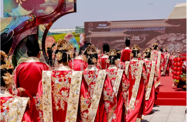 滿滿流量,為城市“添景”?!?strong>這個世界最美的風景是人”。集體婚禮讓新人與美景結(jié)合,更具感染力。比如,在紹興迎恩門風情水街,宋韻婚禮成為“引流利器”;在青島,即墨古城每年都舉行集體婚禮,悠揚的古樂下,新人身著傳統(tǒng)中式婚服,優(yōu)雅而華美……