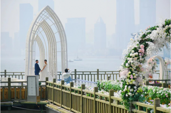 獨有的儀式感、濃郁的喜慶氛圍,為城市增添了風景,為景區(qū)增加了流量,而那些見證愛情的景觀,不少成為網(wǎng)紅打卡點。