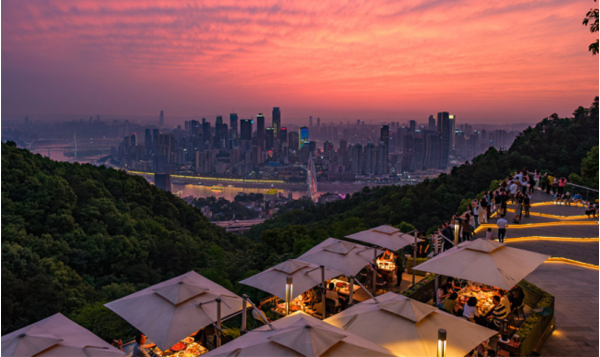 6月的傍晚,重慶嘉陵江畔,夕陽(yáng)的余暉為江面、街道抹上了一層淡淡的粉,顯得格外動(dòng)人。與江面的靜謐不同,街道上人流開始涌動(dòng),炊煙裊裊升起,這才剛剛進(jìn)入一天中最喧鬧的時(shí)段。