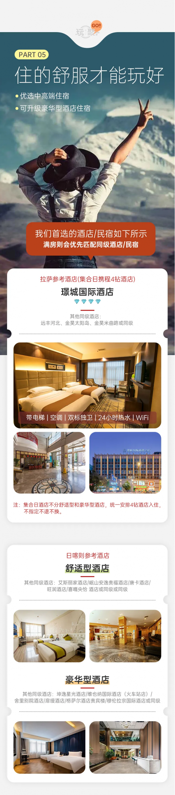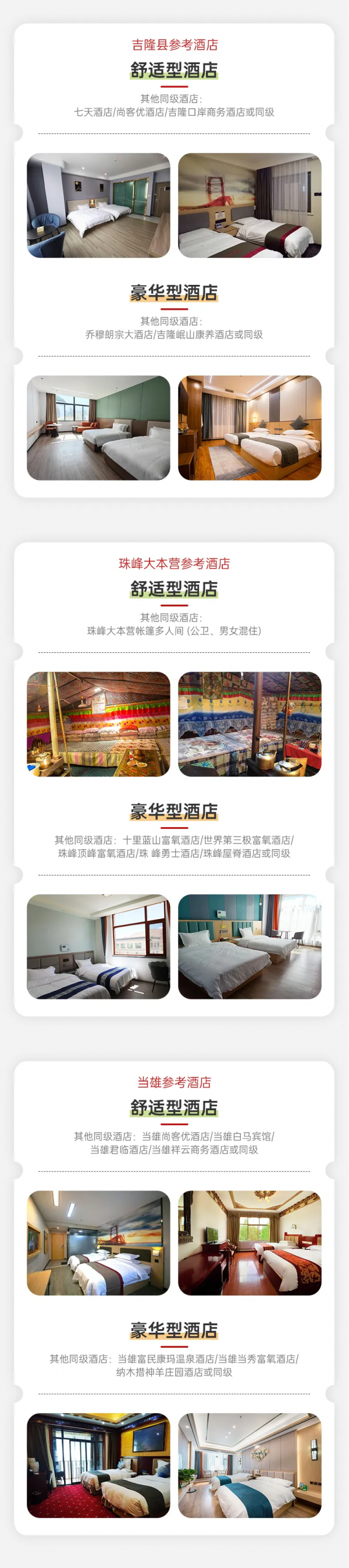(6)對(duì)于住宿有特殊要求的隊(duì)員,請(qǐng)?jiān)趫?bào)名時(shí)告知客服(要求全程一個(gè)人住宿,大床房,三人間等等),在報(bào)名時(shí)確定費(fèi)用,上團(tuán)后臨時(shí)修改住宿,可能無(wú)法滿足其要求;