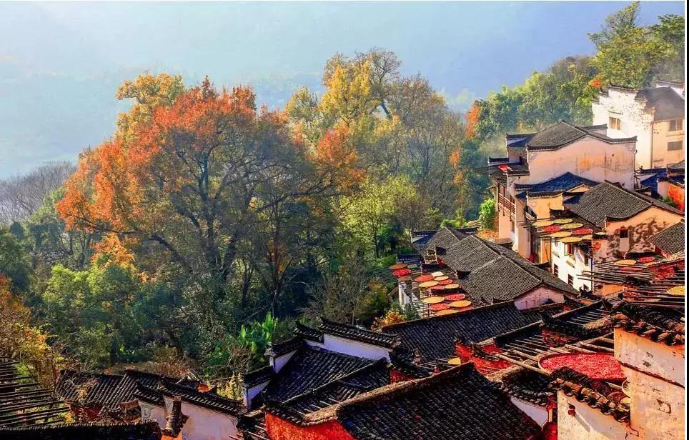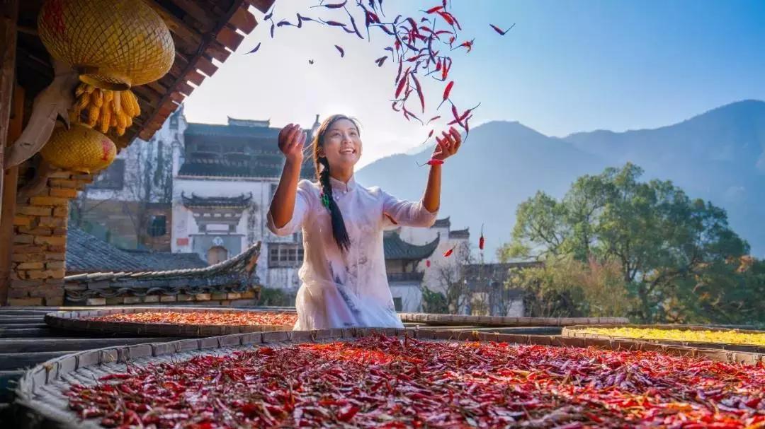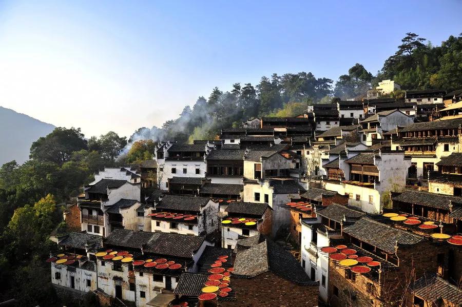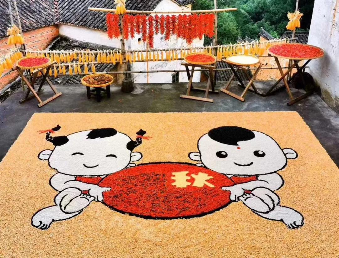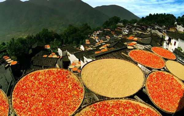 到了秋天在滿天的晴空下,卻多出了一道別樣的風(fēng)景——篁嶺曬秋。
