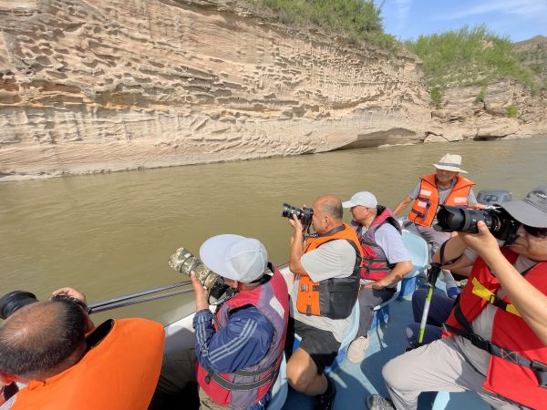 黃河畫廊,位于晉陜黃河大峽谷磧口段,是砂巖石經(jīng)過多年黃河水沖刷、風(fēng)化、自然形成的浮雕壁畫。乘坐游艇到黃河中才能看到"浮雕"。此處參觀1小時。