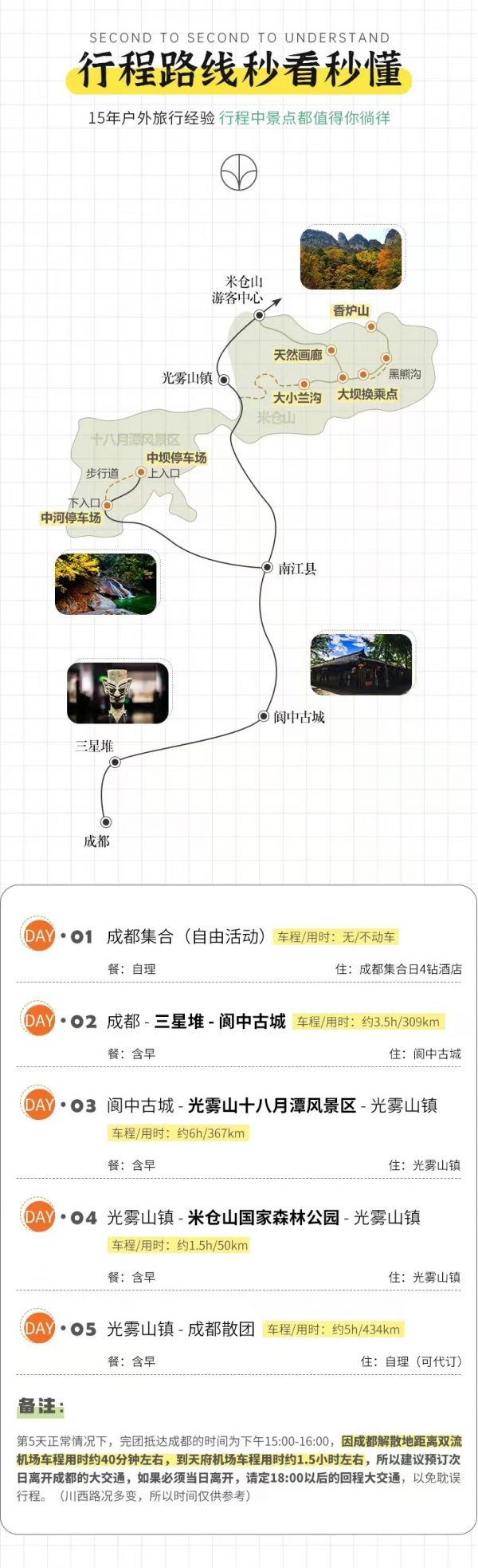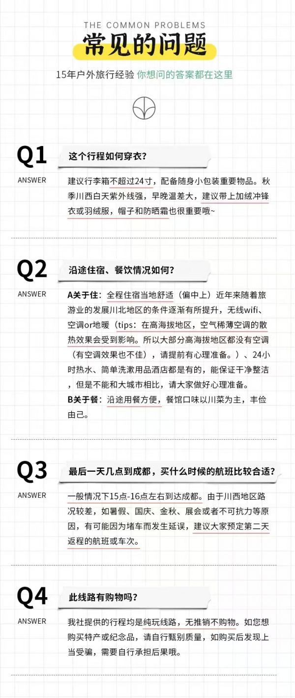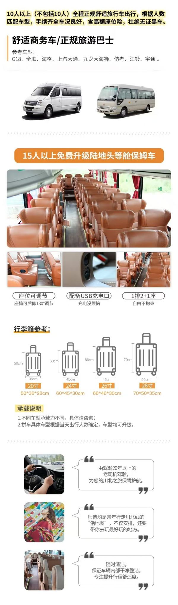 (2)正常情況下,抵達成都的時間為下午15:00-16:00,如果必須當(dāng)日離開,請定18:00以后的回程大交通,以免耽誤行程,敬請諒解;