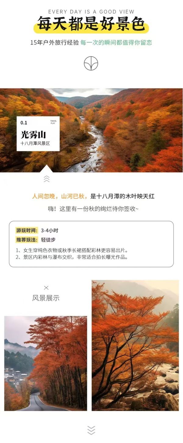 早餐后從從鎮(zhèn)上出發(fā),約15分鐘便可抵達【米倉山國家森林公園(大壩景區(qū))】,秋天向來是彩色的,巴中光霧山也漸漸開始展現(xiàn)出它最美的那面,紅葉一日一色,一步一景,紅得風(fēng)韻特別,紅得多姿多彩,紅出了“丹楓爛漫錦裝城,要與春花斗眼明”的奇妙佳境,毫不夸張的說光霧山的秋天就是我心中的Top1。